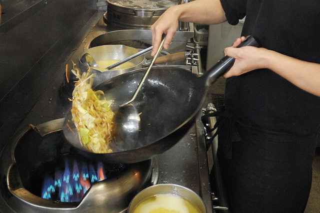 「味噌拉麺」(800円)は、店主がほれ込んだ3種類の白みそを使用。タレのベースになる白みそは、京都の老舗が作る一級品だ。豚骨から取るダシと自慢のみそダレは丼で合わせているため、風味を損なわず、上質な白みそならではの繊細な甘みが口いっぱいに広がる。「甘みのあるスープには飽きさせない工夫が必要」という和田さん。ニンニク風味に炒めるひき肉や野菜は、あえてスープになじませずに盛り付け、食べ進めるうちに味わいが深まる仕掛けにしている。