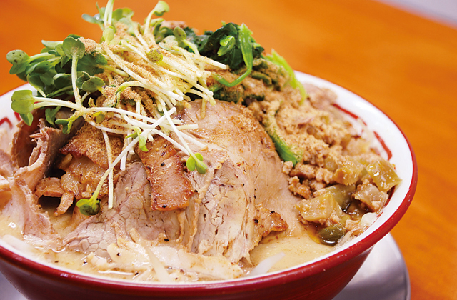 人気は、肉と野菜がモリモリのガッツリ系「男前」ラーメン。スープは塩、みそ、しょうゆなど6種類を用意し、麺も好みに合わせて選べる。ほか、限定メニューも多数登場する。