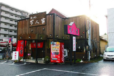 東京の「ラーメン二郎」での修業経験を持つご主人が腕を振るう。店内はカウンター席のみ。お面やフィギュアが飾られ、独特の雰囲気。