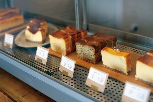 三条では珍しいチーズケーキだけを販売する小さなお店。定番のプレーンは2種類で、濃いチーズの風味と酸味のバランスが絶妙。どっしりとしていながら口溶けがよく、クリーミーな食感。日替わりのフレーバーは、レモン、オレンジ、紅茶、モカなども登場する。