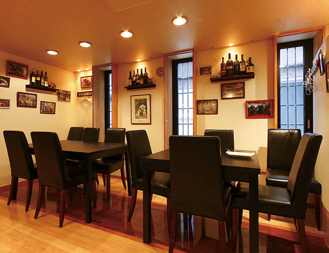 古町9番町にある小路に面した、テーブル2つとカウンターの小さな店。異国情緒あふれる雰囲気のインテリアは、前のお店から引き続き使っているものも。