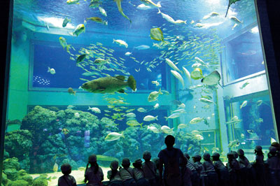 約400種1万点の水生生物を展示。飼育数日本一を誇る100羽のマゼランペンギンが泳ぎ回るペンギンランドや、約40種2千匹の海水魚が泳ぐマリンジャンボ大水槽などは必見。