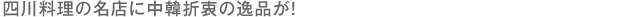 本格的な四川料理を堪能できる、1895年創業の老舗中華料理店。陳建一氏の兄弟弟子である4代目と、東京「四川飯店」で修業した5代目が調理場に立ち、作る料理は100種類超。独創的なメニュー開発にも積極的で、「石焼きマーボービビンバ」もその1つ。過去に1カ月限定で提供し、今は頼まれた時だけ作る「中韓折衷」の逸品だ。熱した石の器にゴハンが敷かれ、上に野菜ナムルと四川マーボー豆腐がたっぷり。卵黄を混ぜると、マーボー豆腐の鋭い辛味が卵黄の甘味でマイルドな辛味に変わる。器に押し付けて焼き目を付けて食べるのがオツ。