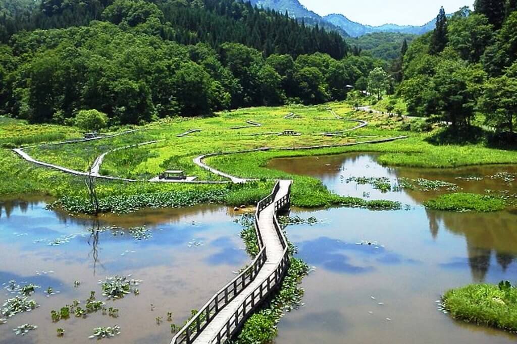 ミズバショウ、ニッコウキスゲなど、4月から11月まで次々と季節の花が咲きほこる湿原。遊歩道も敷設されているので、散策しながら四季折々の花を楽しめます。鳥類や様々な種類のトンボも観察することができるほか、初夏の夕暮れには多い日で数百匹のホタルが舞う姿を観賞できます。
