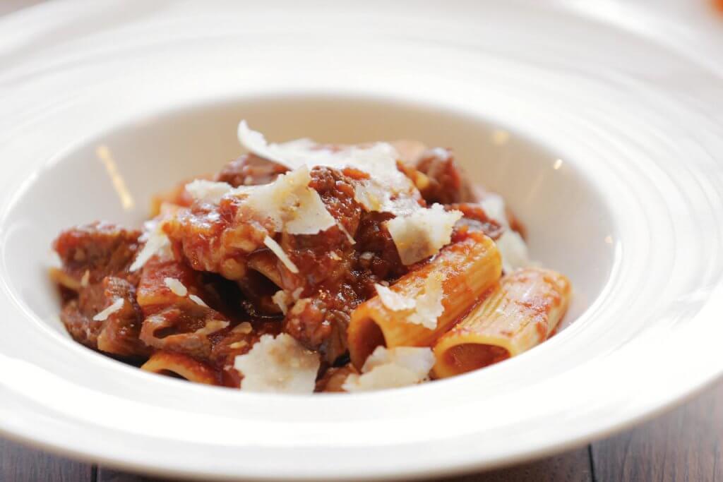 大地が育むおいしい恵みを届ける「Nora Cucina」の県内3店舗目。伝統的な長岡野菜を中心に、Nora Cucina全店のモットーである、地域の素材にとことんこだわった料理を提供します。今回のスペシャルランチのメインは、ごろっと大ぶりにカットした新潟県産牛たっぷりのボロネーゼ。パスタには濃厚ソースとの絡みが抜群なリガトーニをセレクトし、仕上げに香り豊かなペラガッティーノチーズをたっぷりと。その前後を飾る前菜盛り合わせやドルチェミストは、一口サイズを数種盛り合わせるスタイルに。