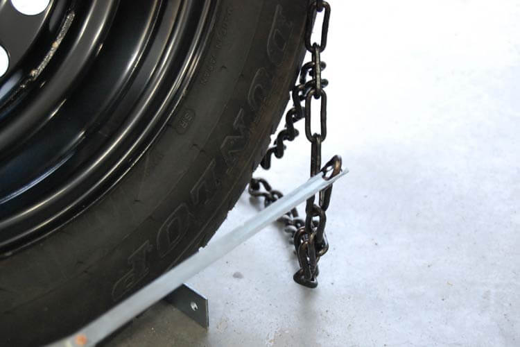大抵のタイヤチェーンは、ある程度の範囲のタイヤサイズに対応できるようになっているため、装着後、タイヤチェーンに「あまり」が出るケースがあります。そんな時はあまった部分を針金で固定しましょう。「こうすることであまったチェーンが暴れてホイールやタイヤハウス内を傷つけることを予防できます」