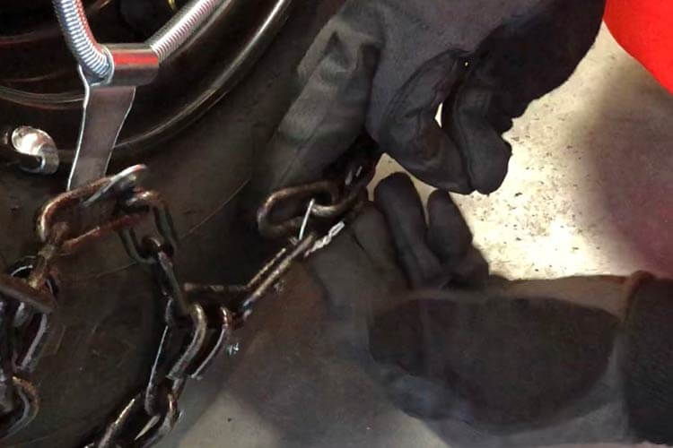 手順5. タイヤ内側のチェーンを連結させる