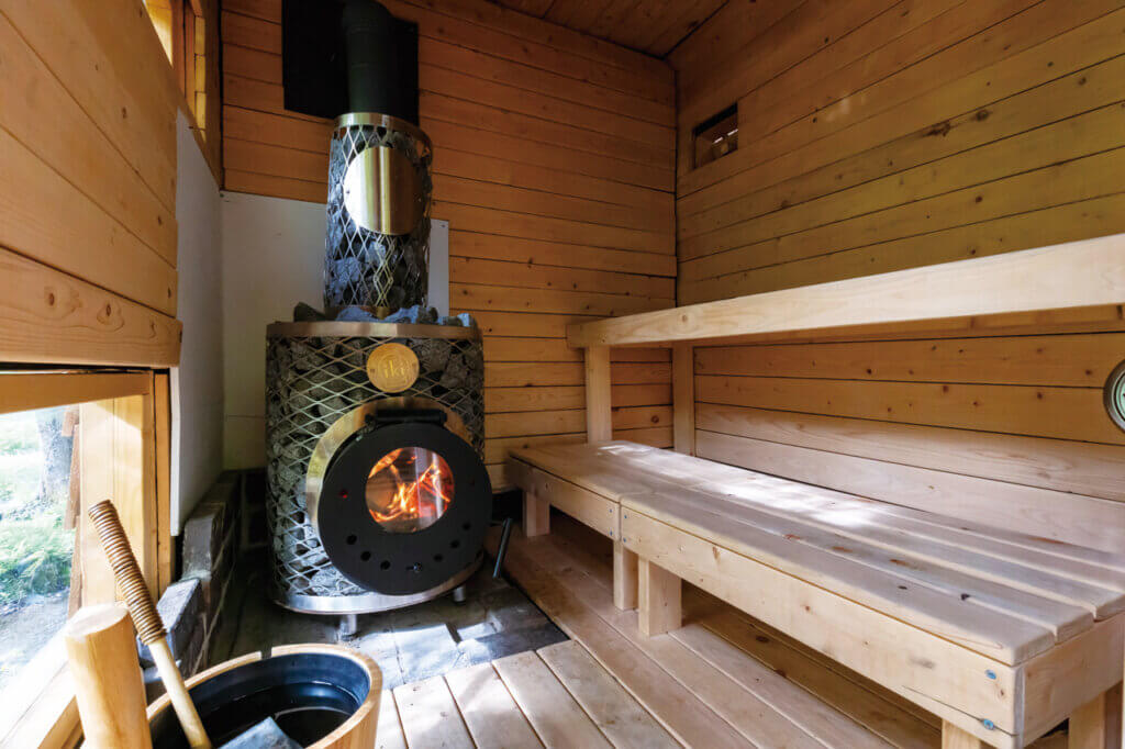 こちらは名水が湧き出る「吉清水湧水の里」に隣接するサウナ施設。ご主人がフィンランドの文献などをもとにDIYで造ったというサウナは薪ストーブを使った本格フィンランド式で、水風呂にはもちろん吉清水の湧水を使用しています。