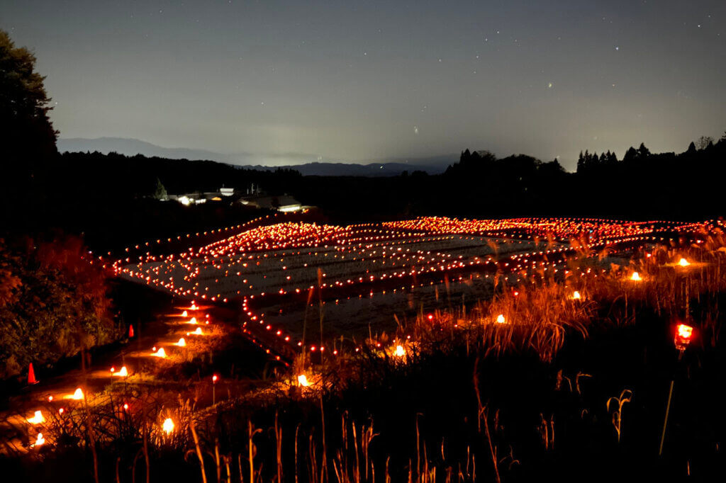 山古志地域ならではの美しい棚田と、錦鯉が育つ棚池に明かりを灯す催し。時間ごとに色が変わり、一帯は幻想的な雰囲気に包まれます。ライトアップされた会場には、1周20分〜30分で巡れるウォーキングコースが設けられます。