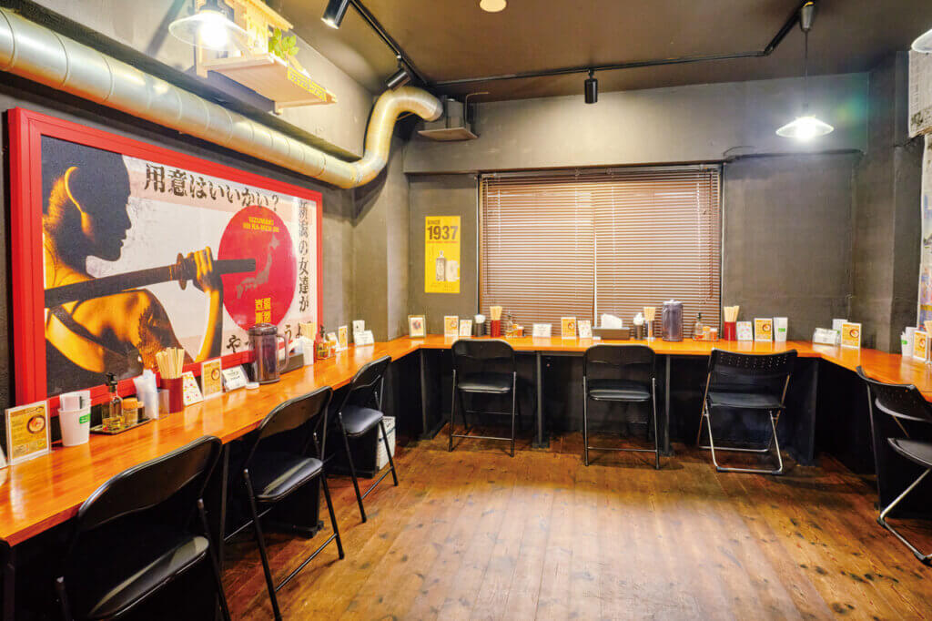 席はカウンターのみですが、広々とした2階はグループでも利用OK。卓上にある自家製ニンニクオイルで味変も楽しめます。お店自慢の濃厚鶏白湯をぜひ一度味わってみてくださいね。
