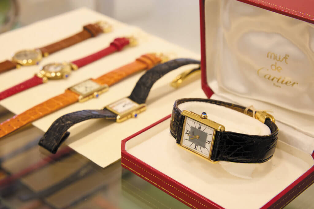 店内にはラグジュアリーブランドからレアなヴィンテージウオッチまで、常時約60点の名品が並びます。