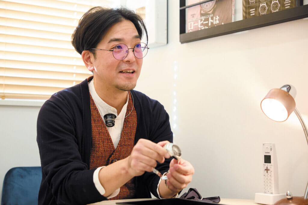 腕時計の本場・スイスへの視察など、業界20年以上の経験を持ち、腕時計の造詣が深い代表の佐藤さん。豊富な知識で時計選びをサポートしてくれます。