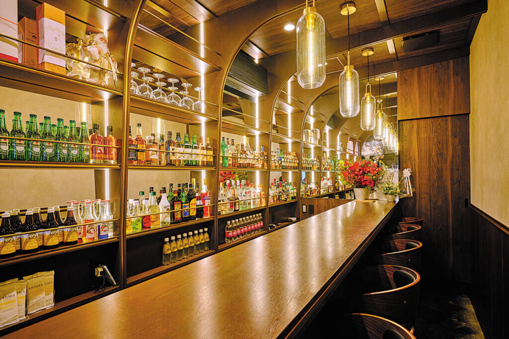 夜はジャパニーズウイスキーの品ぞろえが充実したバーに。