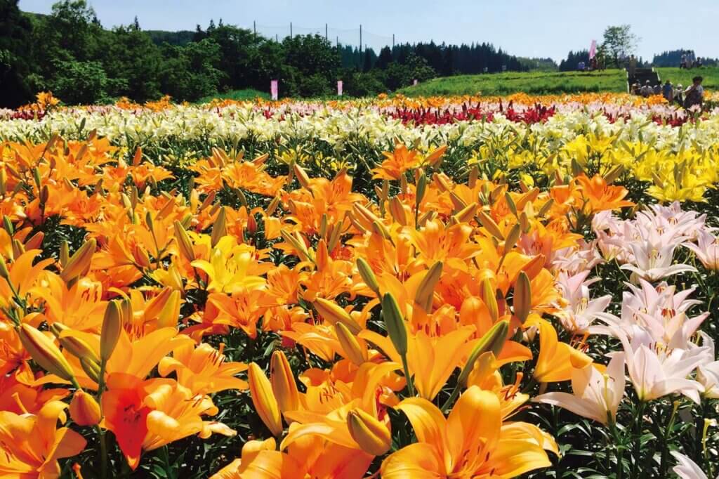 魚沼市は新潟県内最大のユリの産地。特に切り花栽培が盛んで、県内出荷量の6〜7割を占めています。イベント当日は、約1万本の色鮮やかなユリが咲き誇る月岡公園で、ユリの切り花直売や球根、地場農産物などの販売を行います。