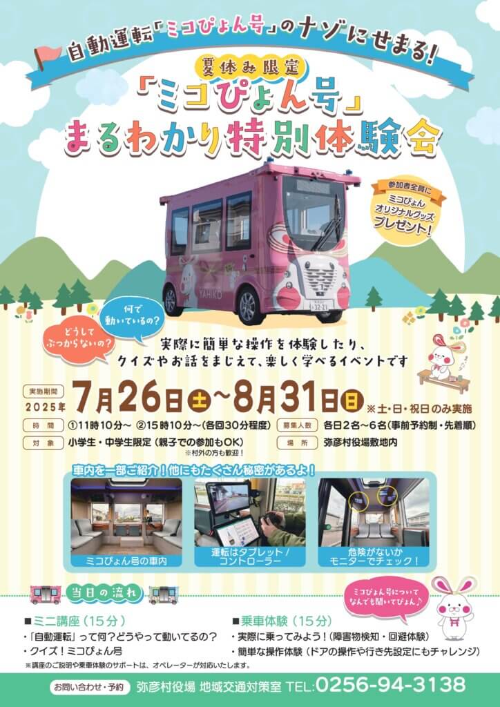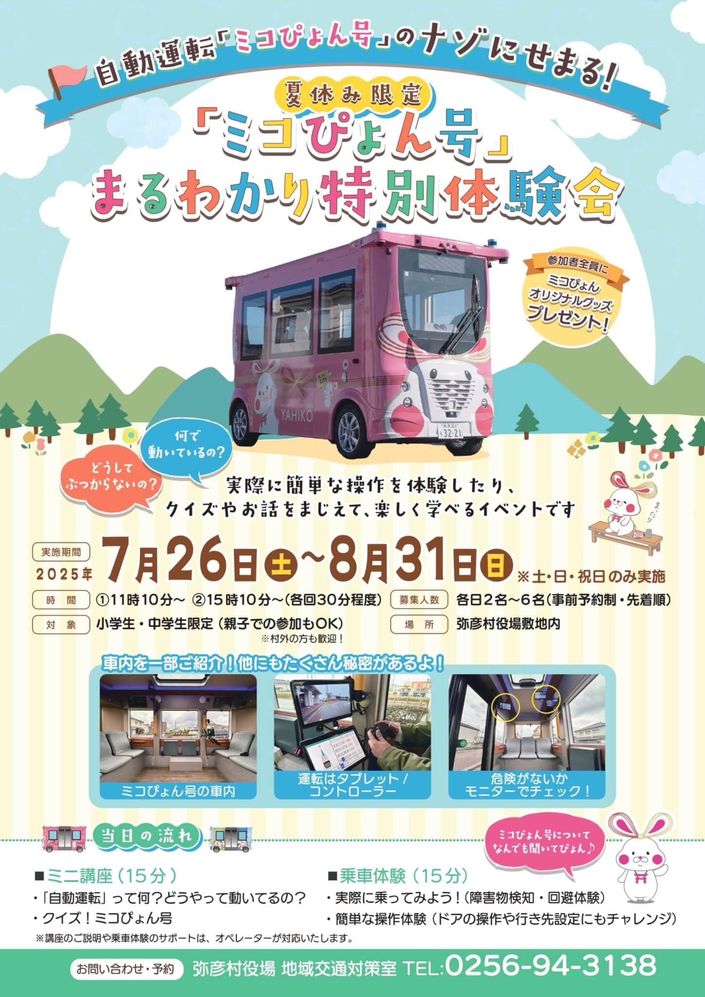 | 備考 | 定員/各当日先着20名 対象/小学生以上(小学生は保護者同伴) |