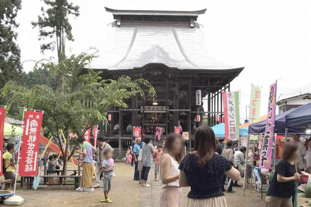 毎年8月9日は観音様の功徳日「九万九千日」で、この日にお参りすると、九万九千日分のご利益があるという特別な一日。小千谷市の寺院「潮音寺」では、国指定重要文化財の観音堂の前に、屋台やキッチンカー、子ども縁日が並び、夏祭りのにぎわいに。本堂では美しい二胡の音色に触れる演奏会や体験、観音堂前ではプロピアニスト・にとまいこさんによるミニコンサートを開催。夜には幻想的な竹林で「火劇屋」によるファイヤーパフォーマンスが行われます。