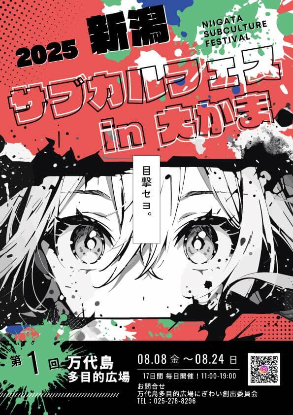アニメ・マンガ・ゲームなどサブカルチャーのグッズが一堂に会するイベント。週末には、ステージイベントやフードイベントも同時開催され、会場を熱く盛り上げます。さらに、最終日には消防団体験会に加え、バスでおでかけキャンペーン「アプリでバス無料デー」やオイシックス新潟アルビレックス・ベースボール・クラブとのコラボ企画、さらには来場特典も。新潟のマンガ・アニメ文化を愛する人は、この夏ぜひ大かまに!