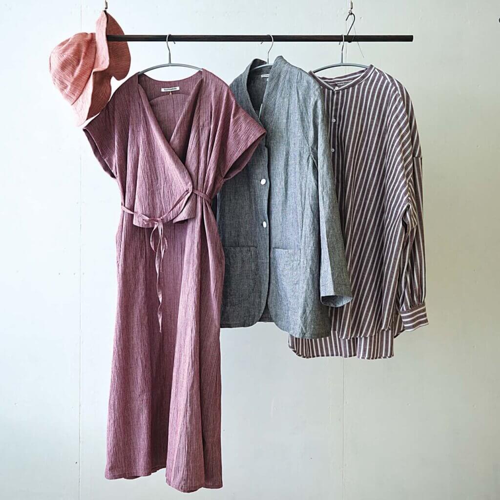 亀田縞を現代のデザインに落とし込んだ洋服はどれもハイセンス。