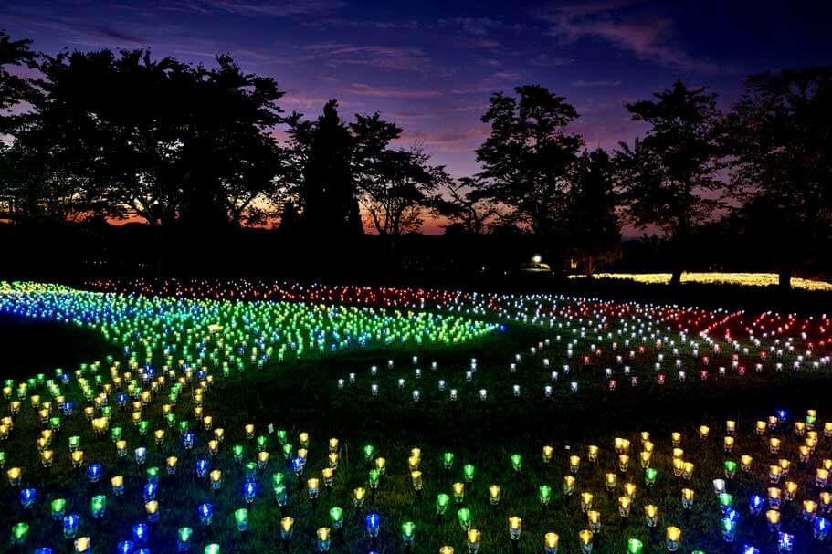 昨年、中越大震災20年事業として実施した同イルミネーションを、今年は夏、秋、冬の3回、それぞれ異なる会場で実施。夏は「おぢやまつり」会場で開催されます。太陽光で充電し、暗くなると自動で点灯し色が変わるLEDライト「ペットボタル(R)」。会場には約5,000個が設置され、イルミネーションで巨大迷路を作ります。
