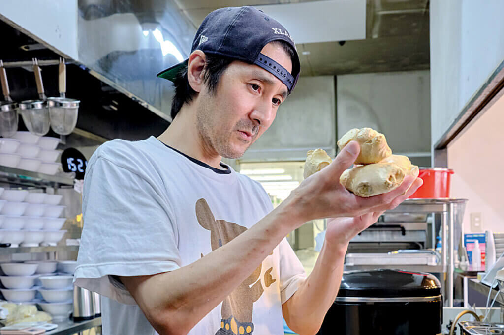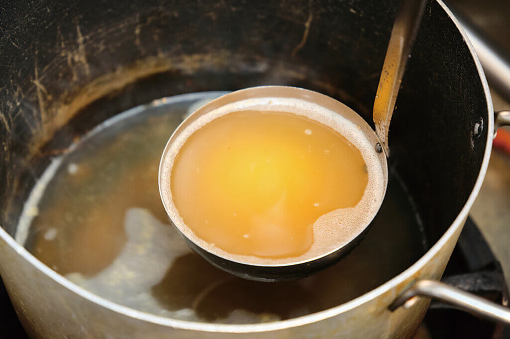 すりおろしたショウガを、適温をキープしながら2〜3日ほど熟成。発酵してマイルドになったショウガが、スープにさらなる深みをプラスする。