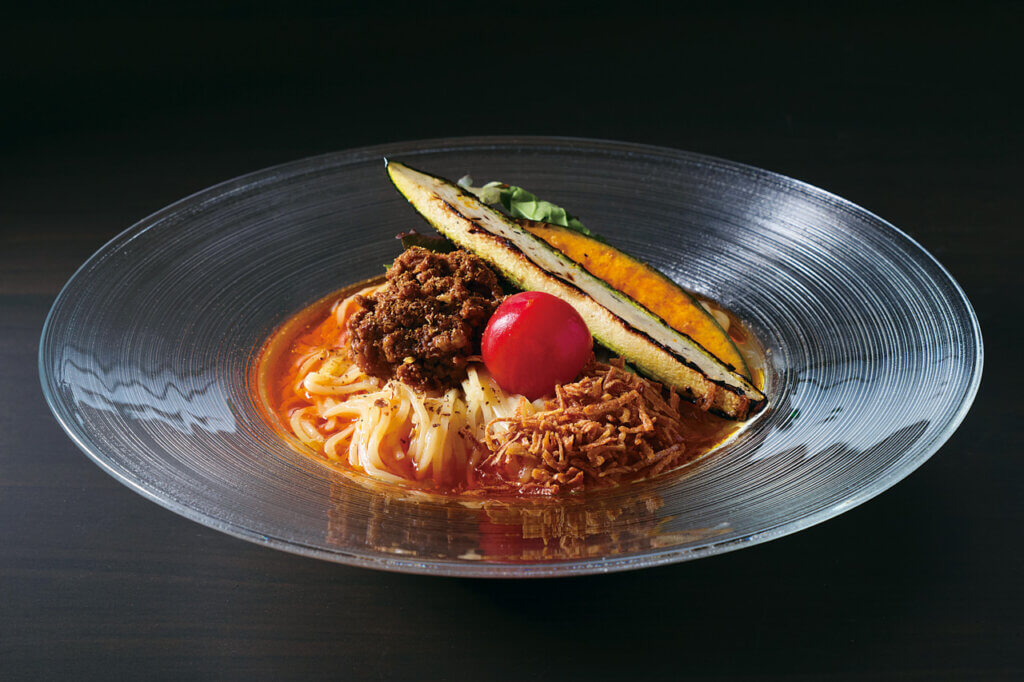 まろやかさで優しい味わいだが、特製肉みそを混ぜることで食べ進めるほどにコク深く、スパイシーに変化する。最後まで驚きとおいしさにあふれた冷製麺だ。