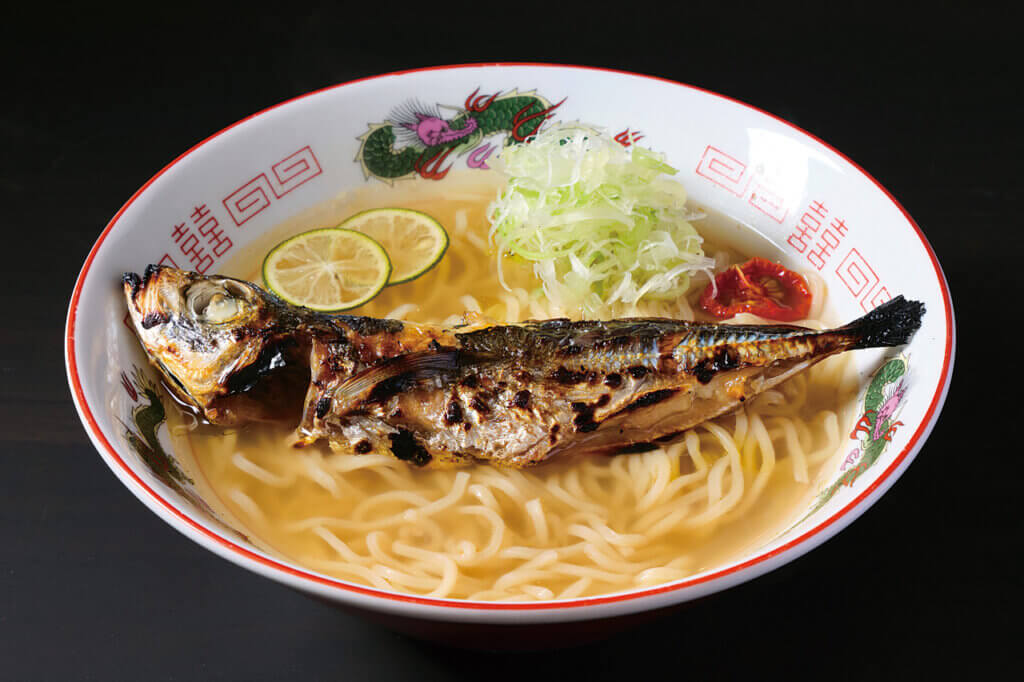 豪快にトッピングされた焼き魚は、専用のグリラーで焼き上げたふっくら仕上げで、香ばしさがスープに深みを加える。魚の種類は水揚げ次第。写真はアジだが、鯛など旬の魚が登場予定だ。店内で打つ自家製麺とともに、出雲崎でしか味わえない一杯をご賞味あれ。