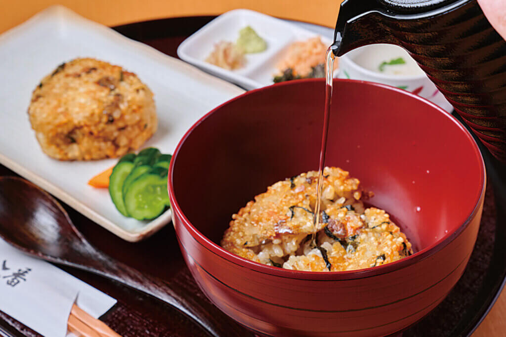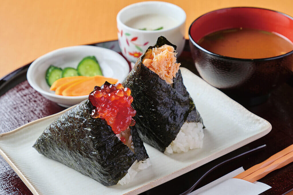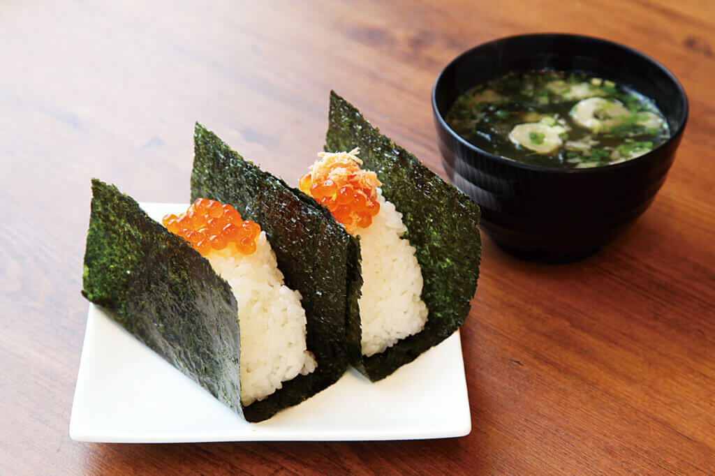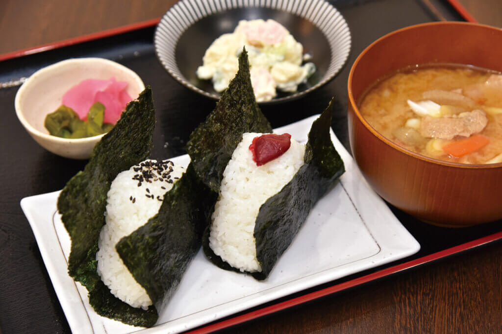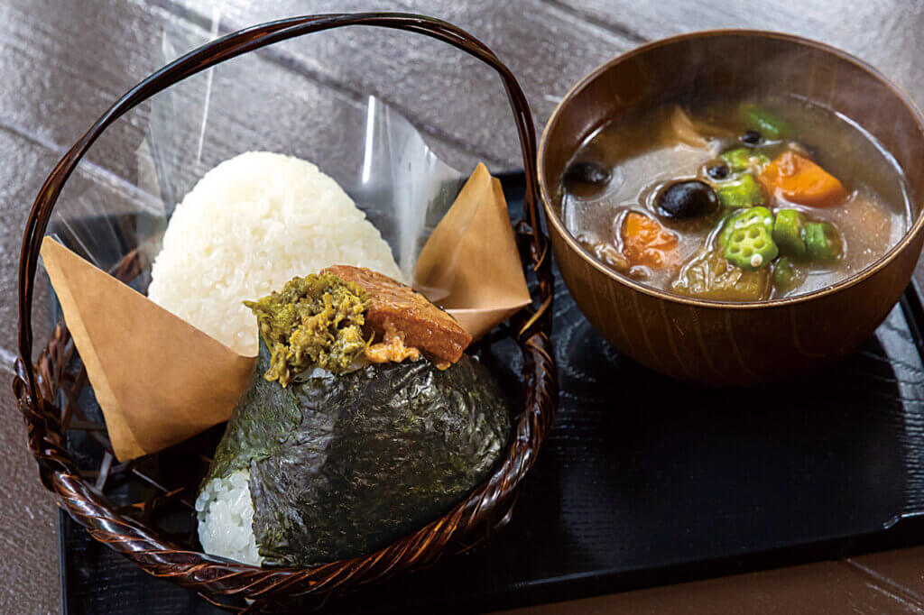 特にお米へのこだわりは格別で、新米の季節には粟ヶ岳の雪解け水で育った希少な「清らか米」がお目見え。ひと味違うおにぎりをいただくことができる。おにぎりは一見大きめサイズに見えるが、お米のふっくらとした食感とたっぷり入った具材であっという間に完食必至。