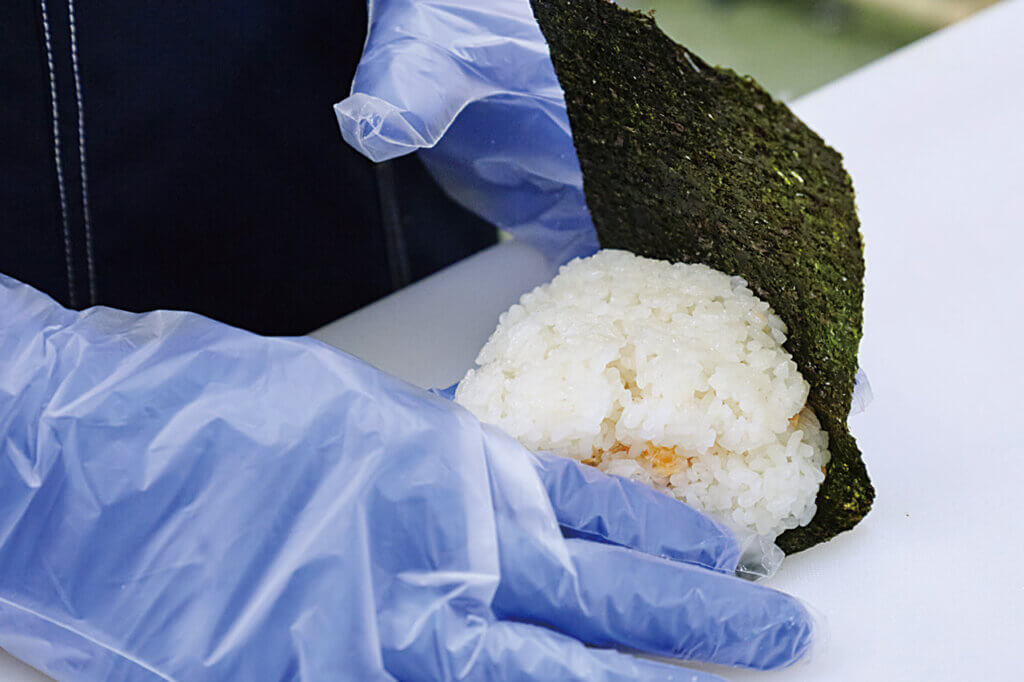 地元産コシヒカリ(ひかりっこ米)を使用し、笹川流れの塩、風味豊かな国産ノリなど、素材にとことんこだわったおにぎりを販売。ご飯の炊き方や握り方を工夫し、一つ一つふっくらと仕上げることで、時間がたってもおいしいと好評だ。
