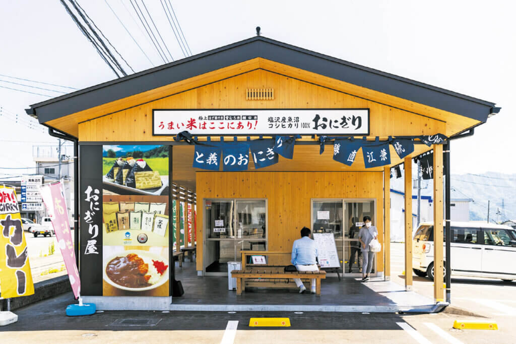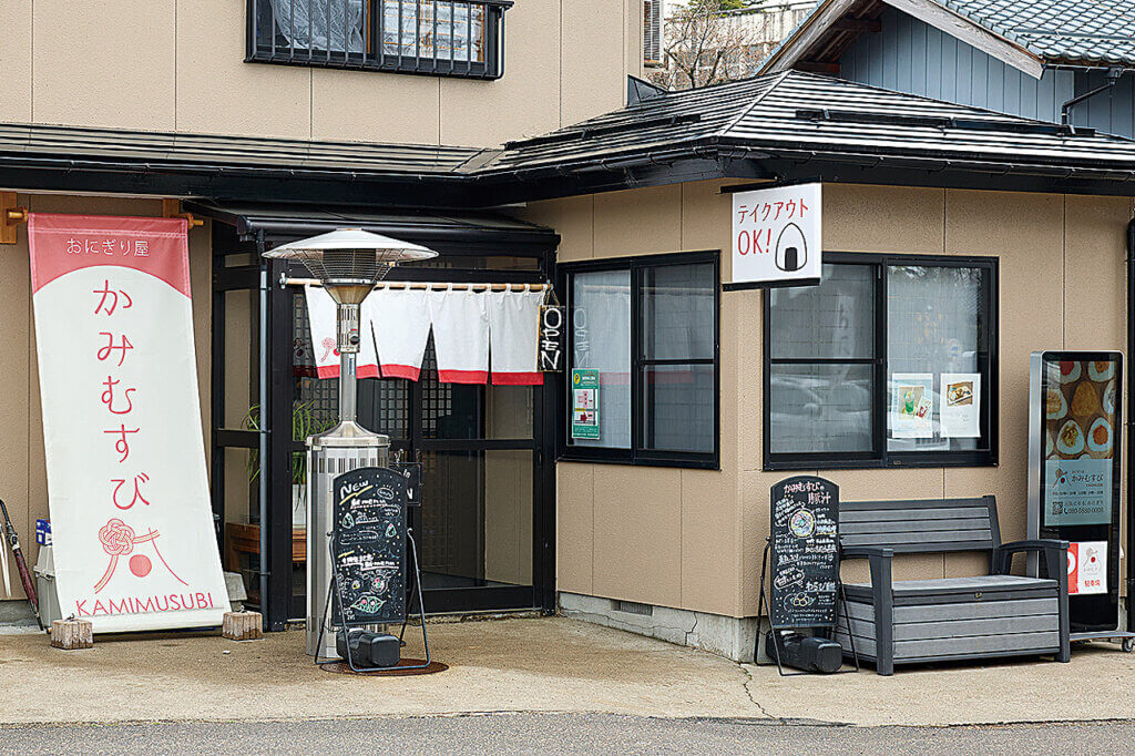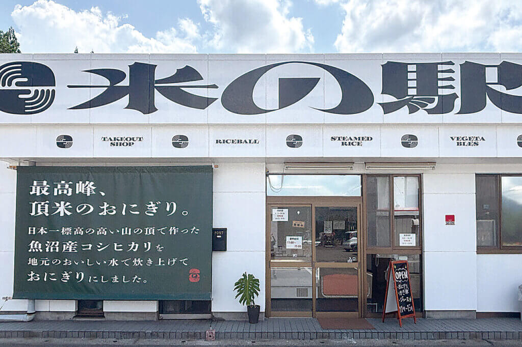 塩沢地区にある「村ファーム」が手がけるブランド米・カカシ米を使ったおにぎりを提供。具材もできる限り地場食材・自家製にこだわり、ご飯は食感を損なわないよう、ほぼ握らずにふっくらと仕上げる。JR越後湯沢駅前という好立地も魅力。