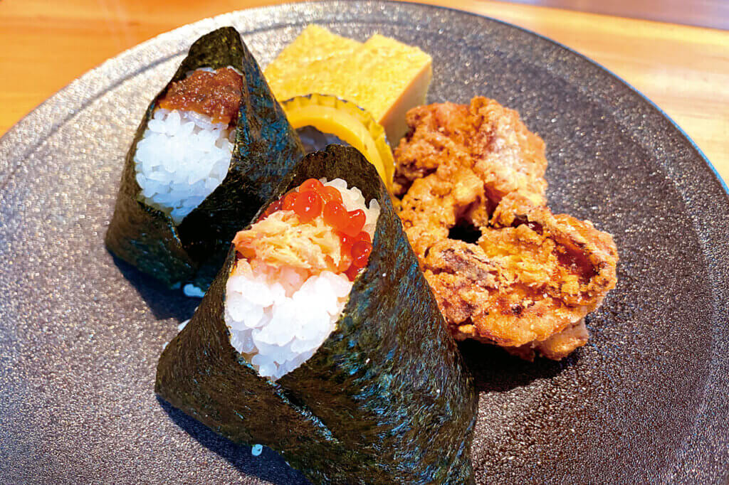 柏崎市内で食事処を営むご主人が、具材の味付けまで徹底的にこだわり抜いたおにぎりを提供。真鯛の醤油焼きなど、この地域ならではの魚介や地場食材を使ったおにぎりがおすすめ。自家製だしまき玉子入りの鶏の唐揚げといった惣菜も販売。