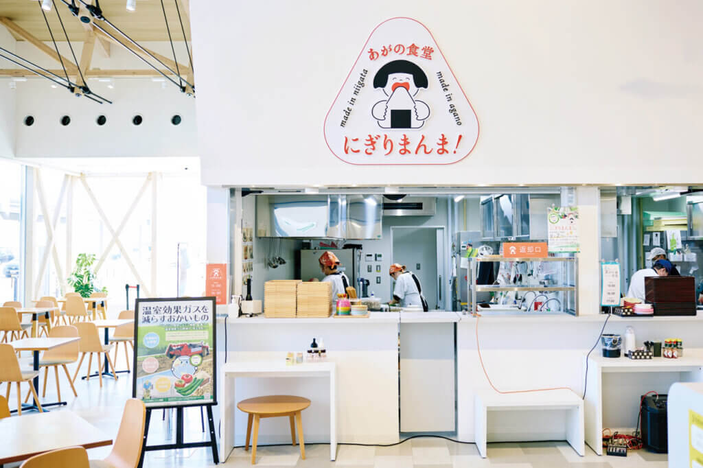 道の駅あがの内にあるこちらは、阿賀野市産コシヒカリや新之助を使ったおにぎりを握りたてで提供。年間5〜10名の農家のお米を月替わりで楽しめるおにぎりは、添加物を極力使わず、素材本来のおいしさを大切にしている。