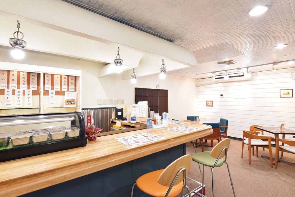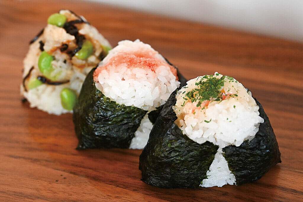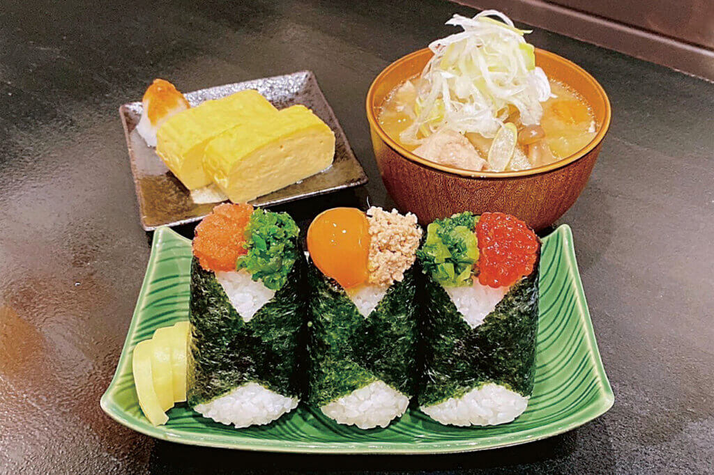 選べる具材はスタンダードなものから味が気になる個性派まで、常時20種以上を用意し、なかでもイチオシは、オーナーの思い出の味・味噌むすびだ。