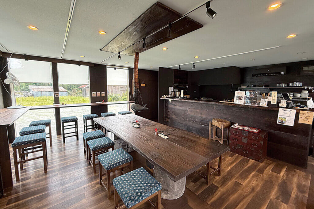 「桃川農園」が営む、自家栽培野菜とお米のおいしさをダイレクトに楽しめる食堂。おにぎりと具だくさんのみそ汁のほか、旬の野菜を使ったサラダが付いたプレートセットが評判。自然の恵みを感じながら、地域の味を存分に味わおう。