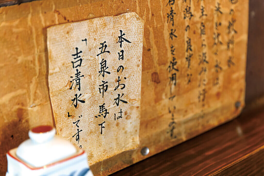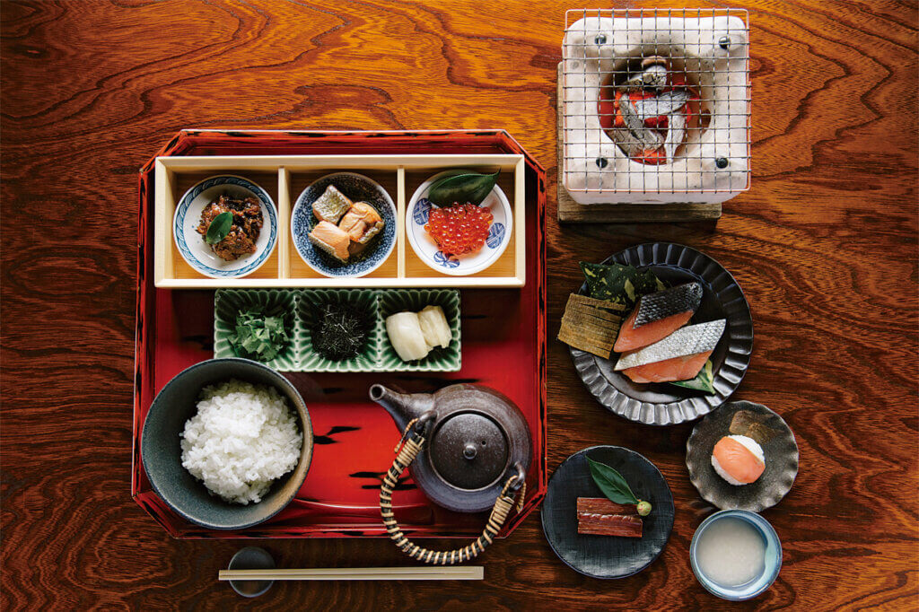鮭の塩引きや酒びたしなど、昔ながらの製法を守って手づくりしているため、添加物や化学調味料は一切不使用。まずは炊きたてのご飯を、焼きたての塩引き鮭や一品料理と一緒に、2杯目は村上名物の番茶にカツオだしを加えただし茶を注いでお茶漬けにしていただこう。