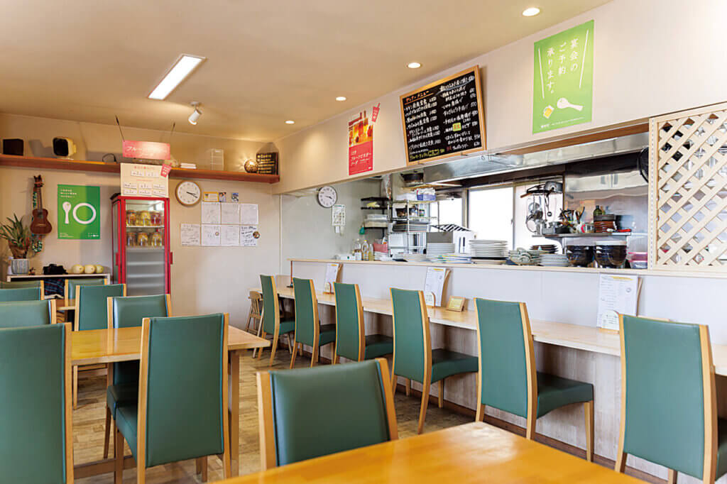 「おいしくたくさん食べて、笑顔になってほしい」という思いから、ランチに付く4品のお惣菜はなんとおかわり自由。おから、ひじき、切り干し大根の定番副菜に加え、県産野菜を使った旬の副菜は、肩肘張らずに楽しめるようなほっとするおいしさ。