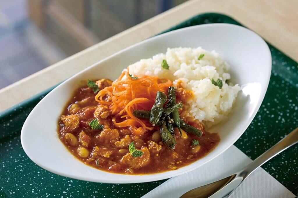 ひとさじ喫茶室のカレーライス(1,430円)は、トマトとチキンの優しい味わい。