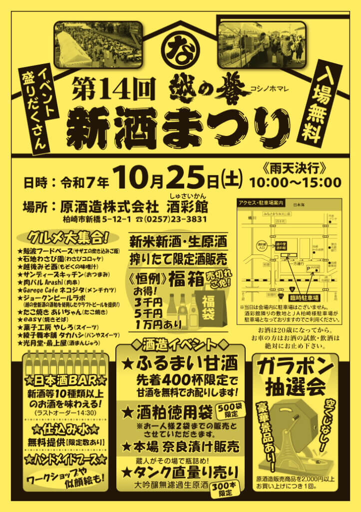 | 会場 | 原酒造 酒彩館(柏崎市新橋5-12-1) |