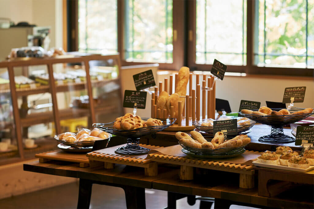 地元の常連客や遠方から訪れるファンなど幅広い客層ながら、誰でもお気に入りを見つけられるような多彩なラインアップも魅力のひとつ。眺めの良いイートインスペースに加え、外にはテラスもあるので、これからの時季はパンと一緒に紅葉も楽しむのがおすすめ。