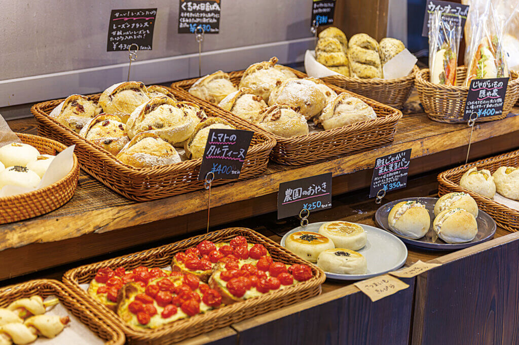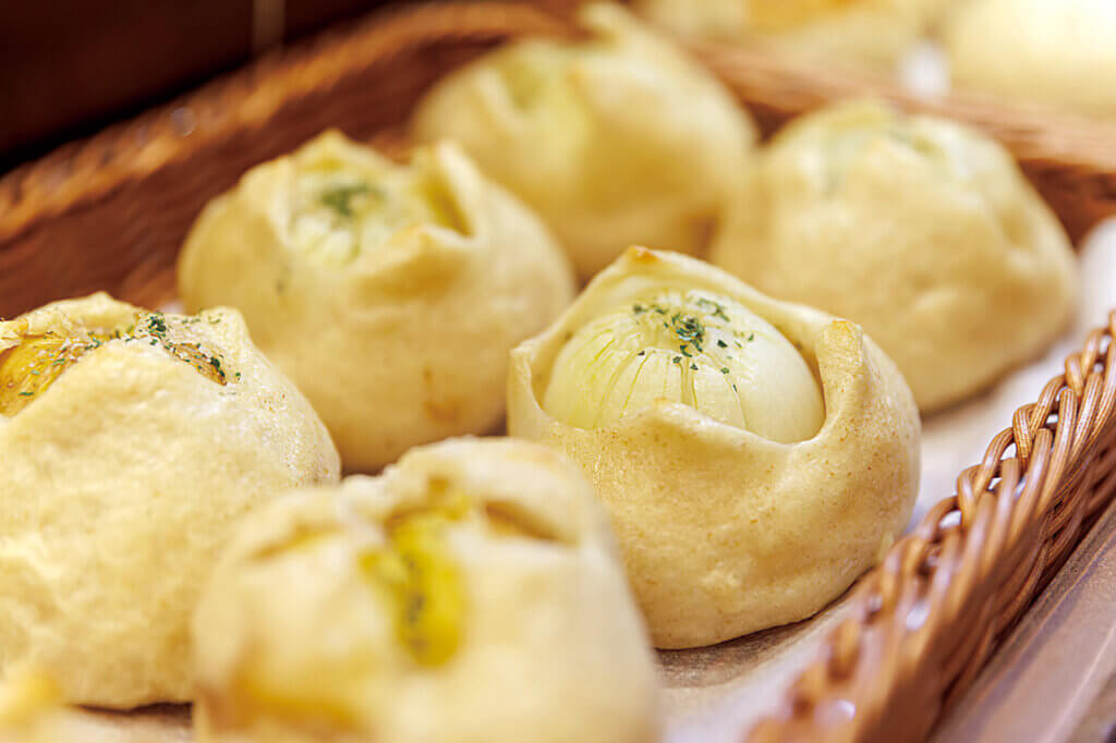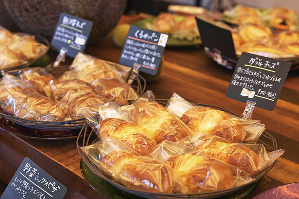 小さなタマネギを丸ごとパンで包み、アスパラには生地をくるりと巻いて、サツマイモはあんやジャム、焼きイモにしてパンに合わせるなど、野菜は余すことなくさまざまな形で使う。「目指すのは身土不二。地域で採れた四季の野菜を味わってほしいです」。農家だからこそ作れる野菜のパン、季節ごとに変わる味わいも楽しみだ。
