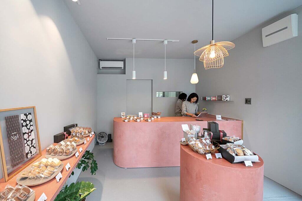 ピンクとグレーを基調としたおしゃれな店内。並んでいるお菓子を見ているだけでも気分が上がりそうです。