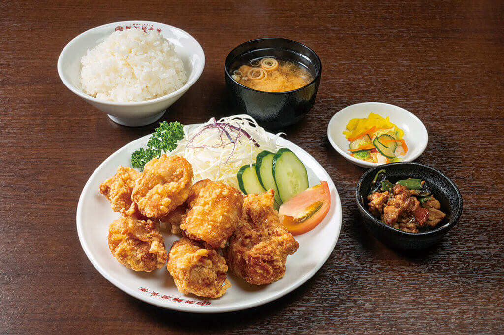 食べ盛りの学生もうならせるボリューム満点のドカカラ定食(990円)。単品でビールと楽しむのも良さそうです。