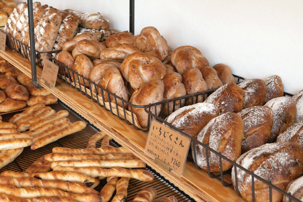 東京の有名店でシェフを務めたご主人とイラストレーターの奥様が営むパン屋さん。自家製酵母やクリーム、具材なども手間をかけて仕込み、アイデアを盛り込んだパンを次々と生み出している。「誰にでも食べやすい」を目指したというパンは、定番から旬の食材を使った季節限定まで個性豊かな顔ぶれで、ユニークなネーミングも印象的。