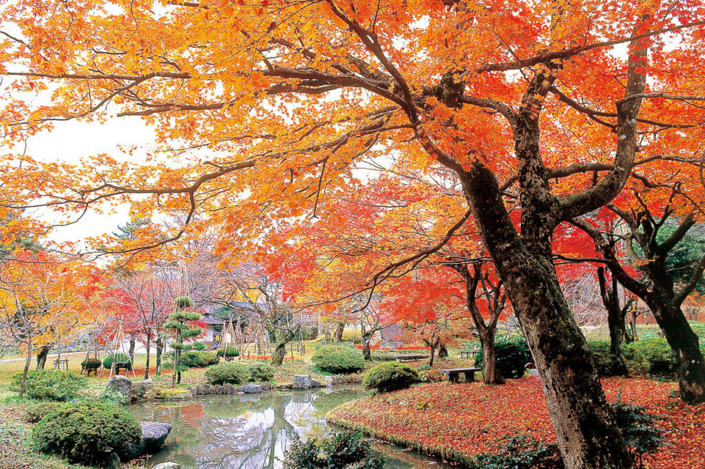 四季折々の美しい景観から「にいがた景勝100選」に選定される公園。春は約3,000本の桜が咲き誇り、県内屈指のお花見スポットとしてにぎわうほか、秋は一面が真っ赤に染まる絶好の紅葉スポットに。落ち葉で埋め尽くされた遊歩道を歩けば、まるで別世界にいるような感覚に浸れるはず。