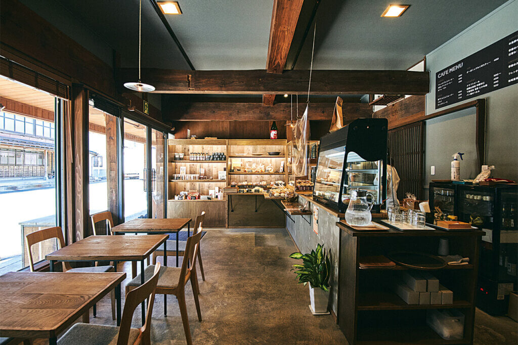 阿賀町津川ののどかな商店街に立つベーカリー&カフェ。店名は阿賀町の方言でおやつを意味する「こんびり」に由来し、全粒粉やクルミ、地場野菜など、地元の食材を積極的に使った惣菜パンと焼き菓子を提供する。添加物を控え、食材のおいしさを生かした優しい味わいと、地元小麦の豊かな風味を感じながら味わって。