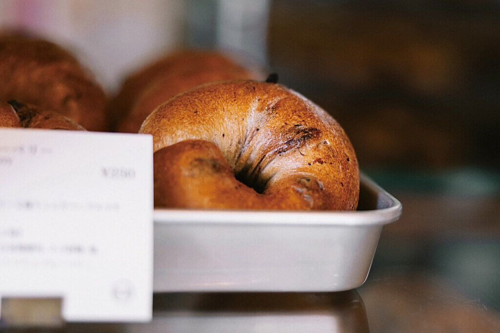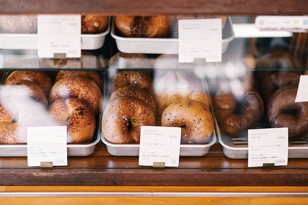五泉市で11年、ベーグル専門店といえばこちら。北海道産小麦と自家製レーズン酵母で作るベーグルは、外はパリッと、中はむちっと、かむほどに甘く香ばしい小麦の風味が口いっぱいに広がる。生地に練り込む果物のコンポートやあんこは手作り。優しい甘さと存在感で、素材の味を放ちつつも、生地のおいしさを際立たせてくれる。