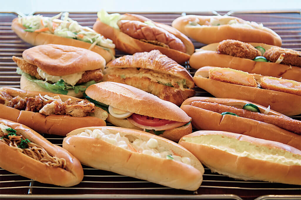 五泉市の本町通りに立つ、創業98年の老舗。地元のソウルフードとして親しまれているコーヒーパンをはじめ、コッペパンから菓子パンまで、昔ながらの製法で作るパンは100種類以上をラインアップ。たまごや焼きそばといった定番から納豆コロッケなどの変わり種まで多彩な顔ぶれは、見ているだけでも楽しい気分に。