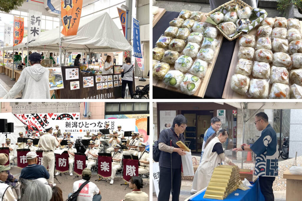 当日は、料理家の佐藤智香子さんによる「おにぎりブース」、飲み比べが楽しめる「日本酒ブース」、各地の名物グルメの販売や体験を行う「まちコラボブース」、大道芸などのパフォーマンスも楽しめる芝生エリアなどが登場。新潟の台所・本町エリアで思いっきり楽しみましょう。