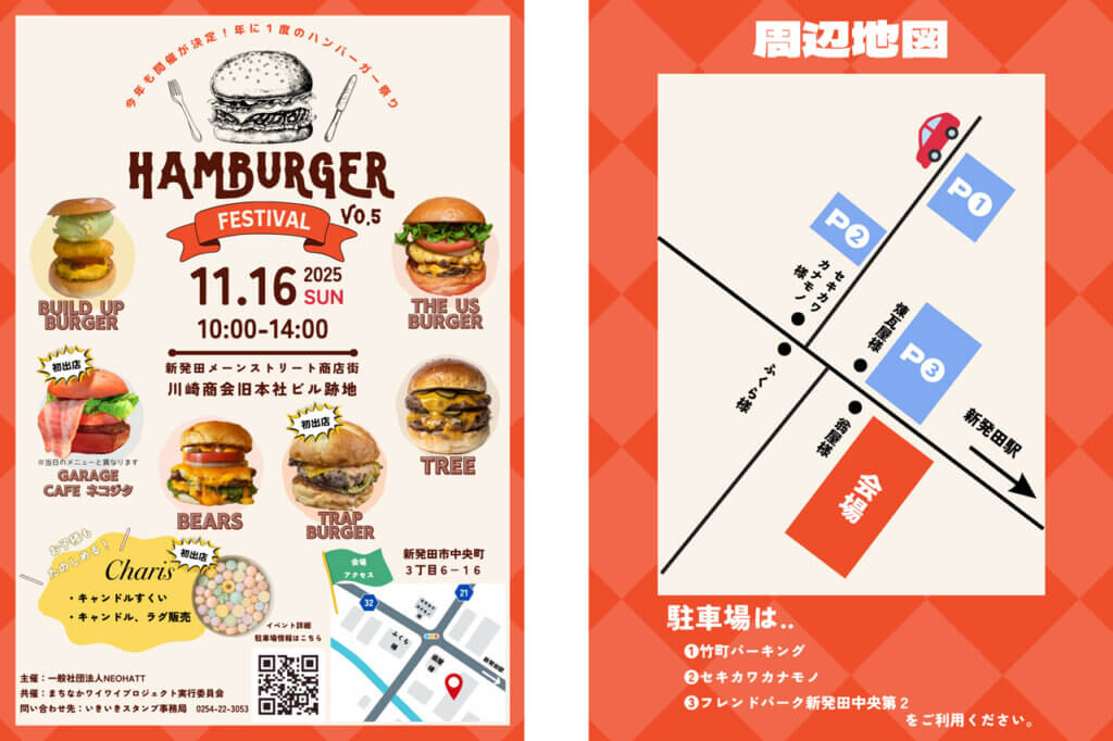 今年も「新発田ハンバーガーフェス」の開催が決定。県内の人気バーガーが新発田市に集結します。今回は、新たな参加店も加わり、全6店舗が登場!個性あふれる“とっておきのバーガー”を一度に味わえるチャンスです。ジューシーな肉汁、香ばしいバンズ、とろけるチーズ…。食べ比べるのも、気になるバーガーを存分に楽しむのもOK。自分の「推しバーガー」を見つけてみて。売り切れ次第終了となるので、早めにお出かけを!
