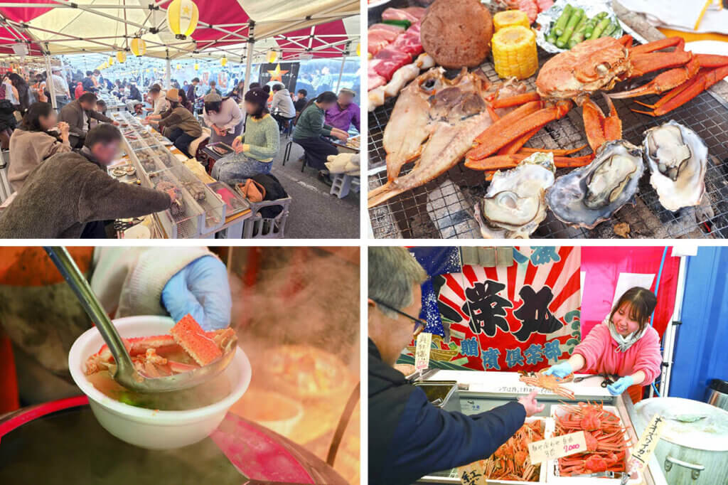 「食べて能登を応援」をテーマに、能登産の海産物を炭火で焼き上げながら楽しむグルメイベント。旬のカニや牡蠣をはじめ、干物など多彩な海の幸をラインアップ。そのほか、体を温めるのにぴったりなカニ汁もあります。