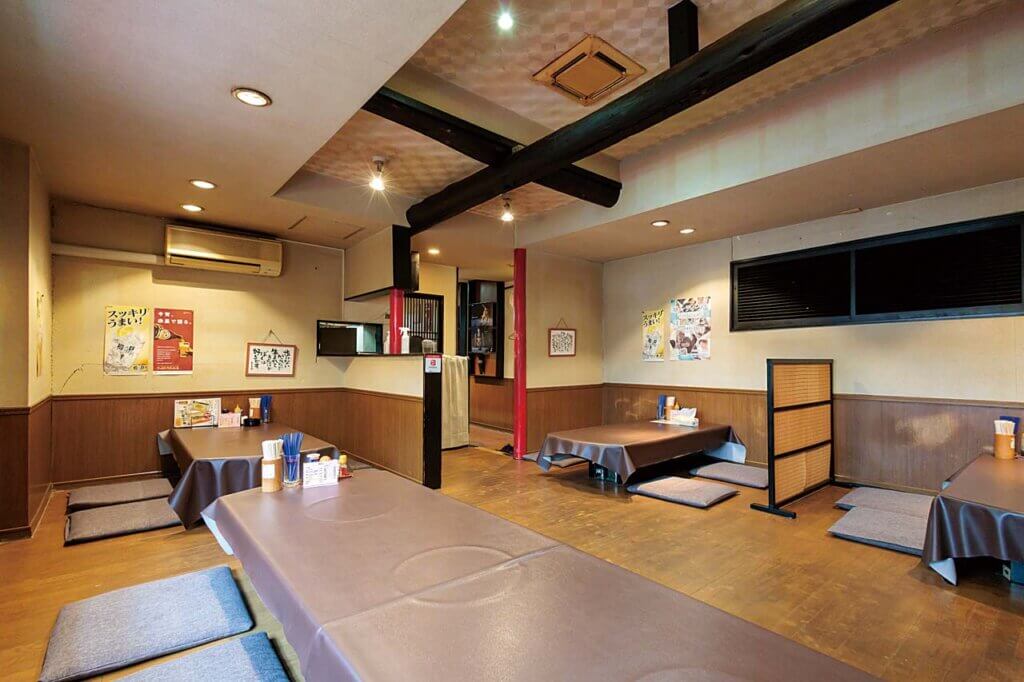 店内はカウンターのほか座敷も。深夜3時まで営業しているので、飲んだ後のシメにもぴったりです。
